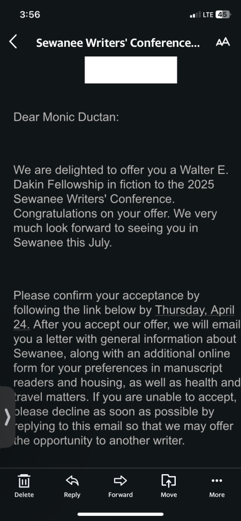 Guess who’s going to Sewanee Writers’ Conference this summer as a Walter E. Dakin Fellow?!
